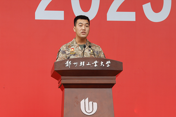 九三阅兵预备役部队方队参加者、软件学院学生肖达作为在校生代表发言