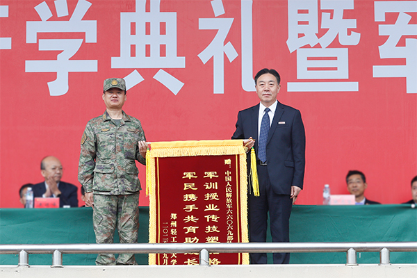 党委书记张志坚代表学校向承训部队赠送锦旗
