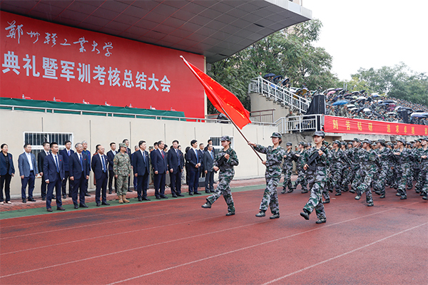 9月26日,郑州轻工业大学2025级新生开学典礼暨军训考核总结大会在东风校区隆重举行。校领导张志坚、魏世忠、杨新宇、王延峰、张成、周立明、顾兴良、王继威以及承训部队首长出席。相关部门和各学院负责同志、全体新生辅导员、教师代表、校友代表、承训部队教官参加大会并观看新生军训成果汇报。大会由校党委副书记杨新宇主持。