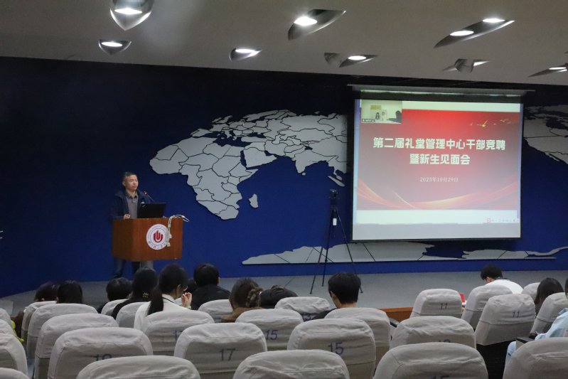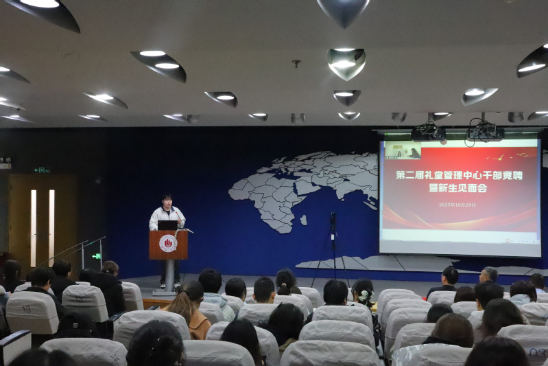 2025年10月29日,礼堂管理中心在东风校区图书馆学术报告厅成功举办第二届礼堂管理中心干部竞聘暨新生见面会。会议由指导老师张江伟主持,礼堂管理中心全体成员参加会议。